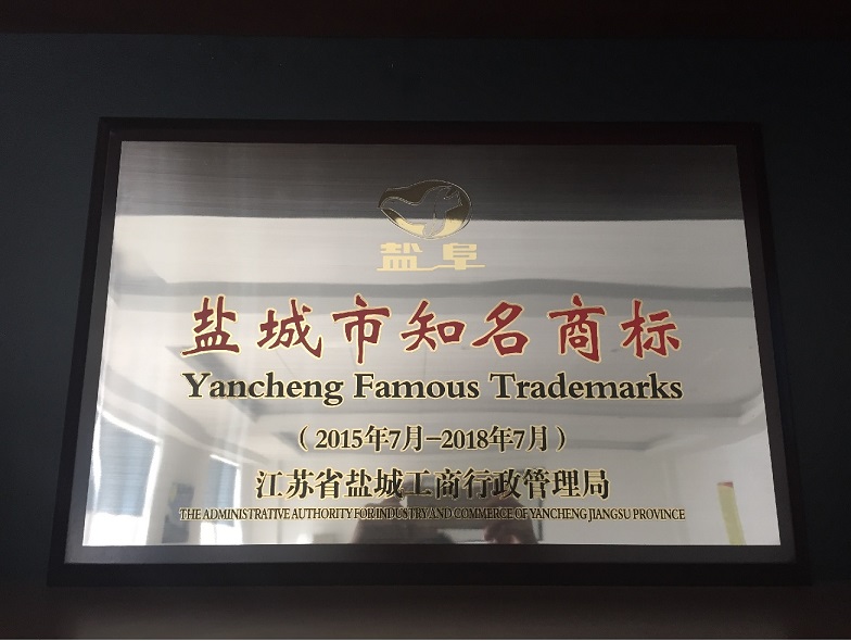 再次榮獲鹽城市知名商標