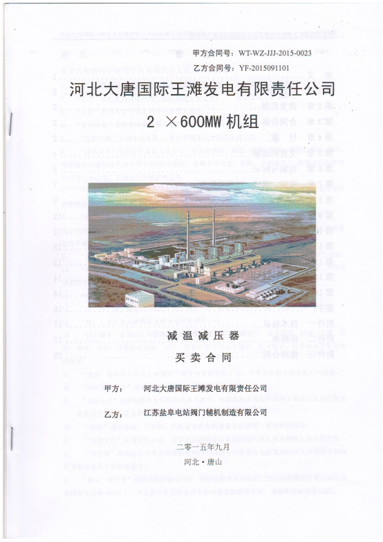 鹽阜工業(yè)于2015年9月份中標(biāo)大唐王灘電廠2x600MW機(jī)組減溫減壓裝置設(shè)備。至此,鹽阜工業(yè)的減溫減壓裝置產(chǎn)品在五大發(fā)電集團(tuán)均有應(yīng)用業(yè)績(jī),具體如下: