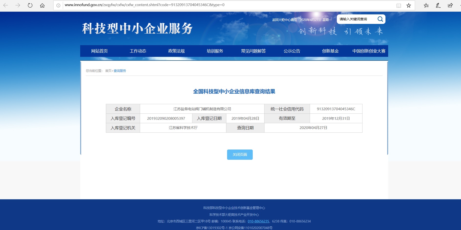 根據(jù)國家科學(xué)技術(shù)部火炬高新技術(shù)產(chǎn)業(yè)開發(fā)中心網(wǎng)站的公示信息,我公司成為了2019年度全國科技型中小企業(yè)。