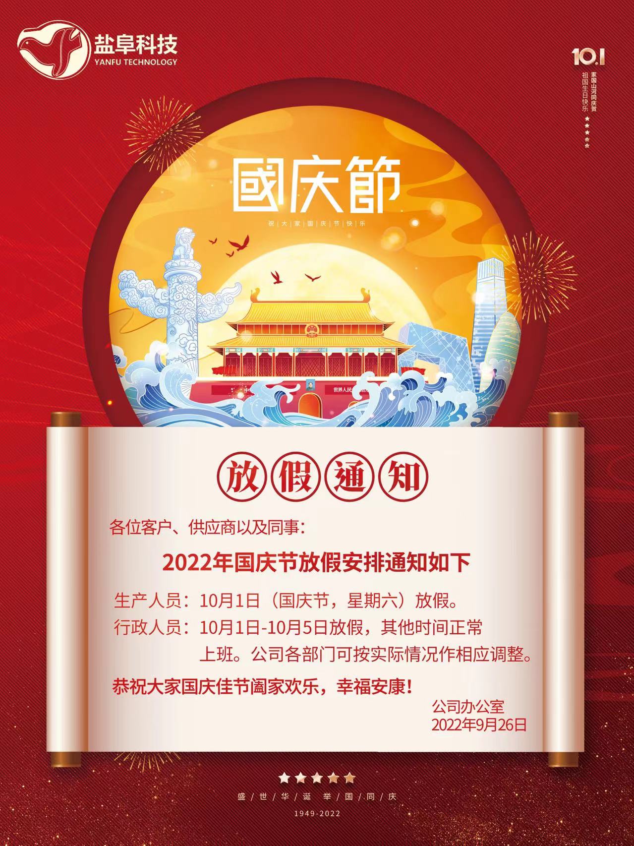 生產人員:10月1日(國慶節(jié),星期六)放假。