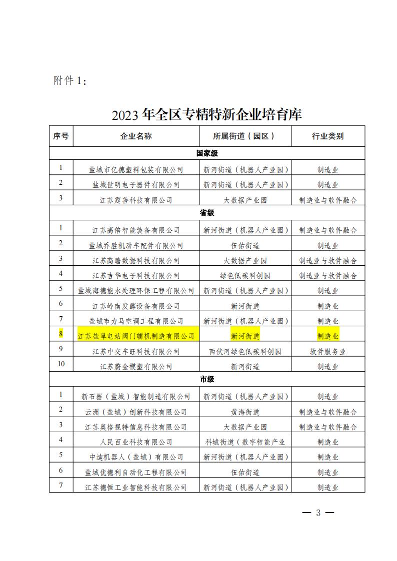 根據(jù)江蘇省鹽南高新區(qū)經(jīng)濟(jì)發(fā)展和科學(xué)技術(shù)局的官方文件《關(guān)于開展2023年度優(yōu)質(zhì)中小企業(yè)入庫和創(chuàng)新型中小企業(yè)評(píng)價(jià)工作的函》,附件1《2023年全區(qū)專精特新企業(yè)培育庫》名單中第二項(xiàng)“省級(jí)”名單第八項(xiàng),公司已經(jīng)入選江蘇省專精特新企業(yè)培育庫。