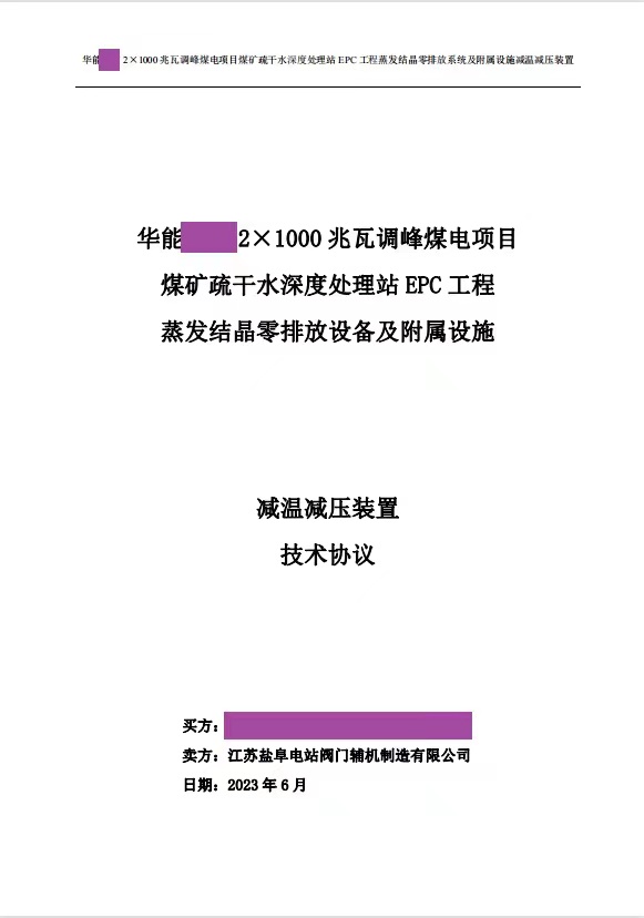 圖1:中國華能某百萬機(jī)組減溫減壓裝置技術(shù)協(xié)議 |