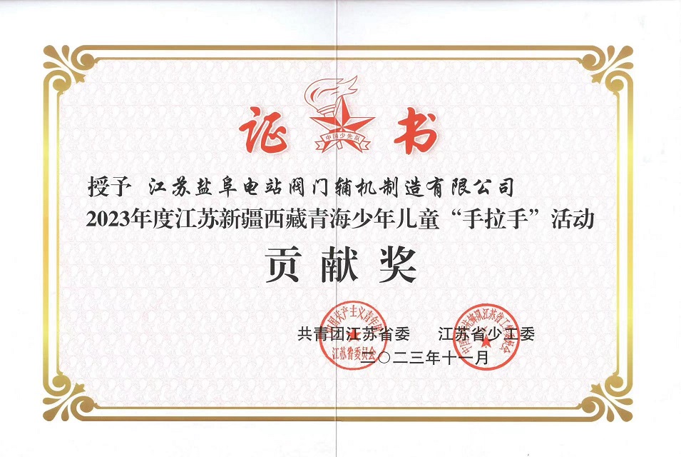近日,公司收到了共青團(tuán)江蘇省委頒發(fā)的“2023年度江蘇新疆西藏青海少年兒童‘手拉手’互助活動貢獻(xiàn)獎”的證書,以表彰公司為促進(jìn)民族團(tuán)結(jié)、服務(wù)西部青少年成才成長所作出的貢獻(xiàn)!