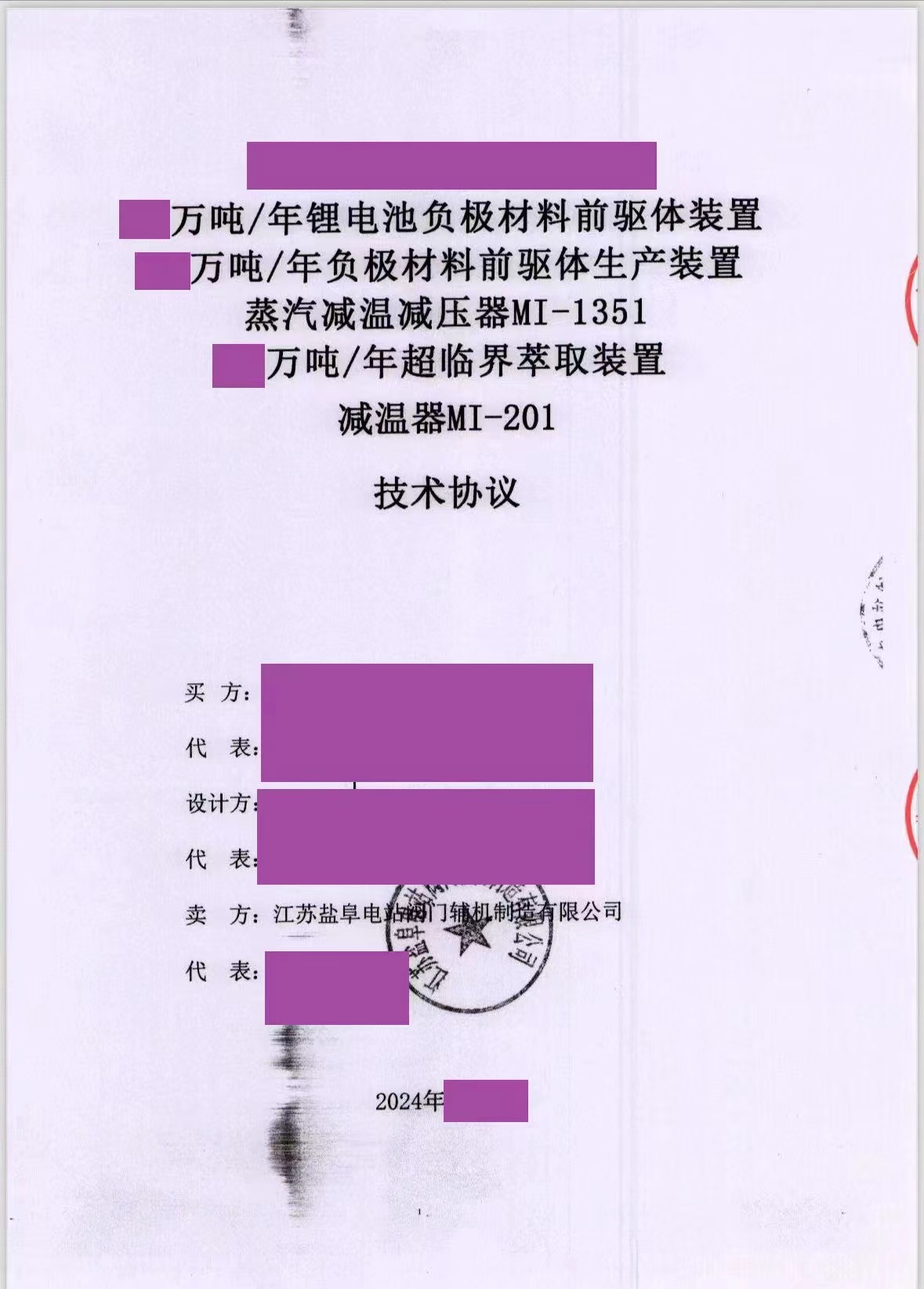 圖1:鋰電池負(fù)極材料前驅(qū)體裝置蒸汽減溫減壓器項目技術(shù)協(xié)議 |