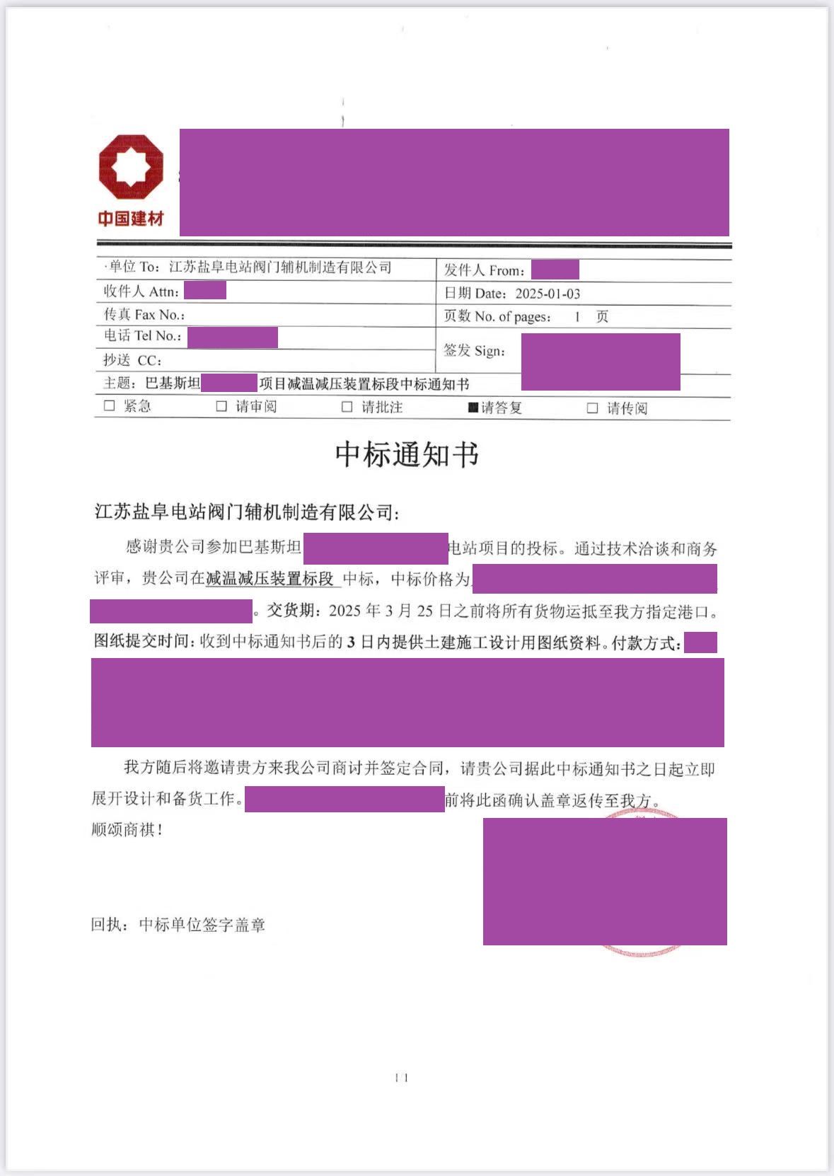 新年伊始,公司成功中標(biāo)了位于巴基斯坦的某電站減溫減壓裝置項目,這表明了公司在積極響應(yīng)國家“一帶一路”戰(zhàn)略中更進了一步。