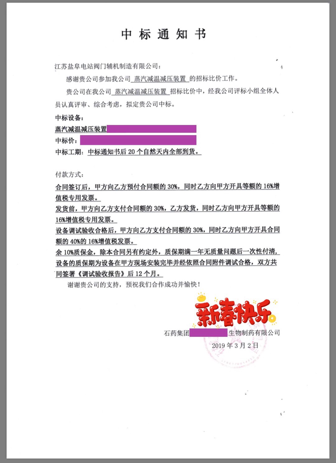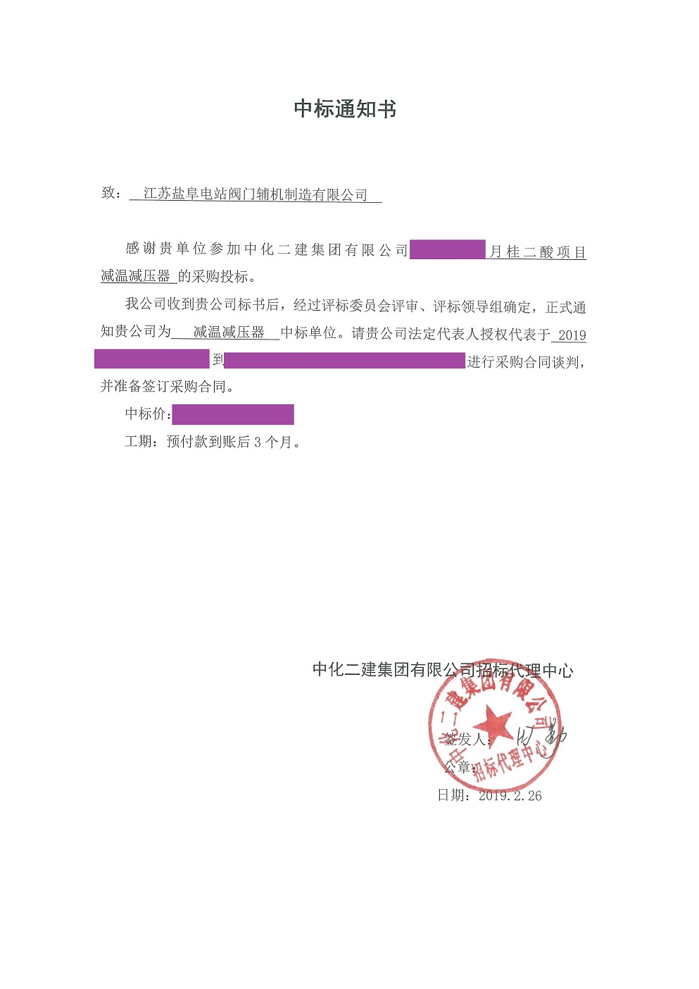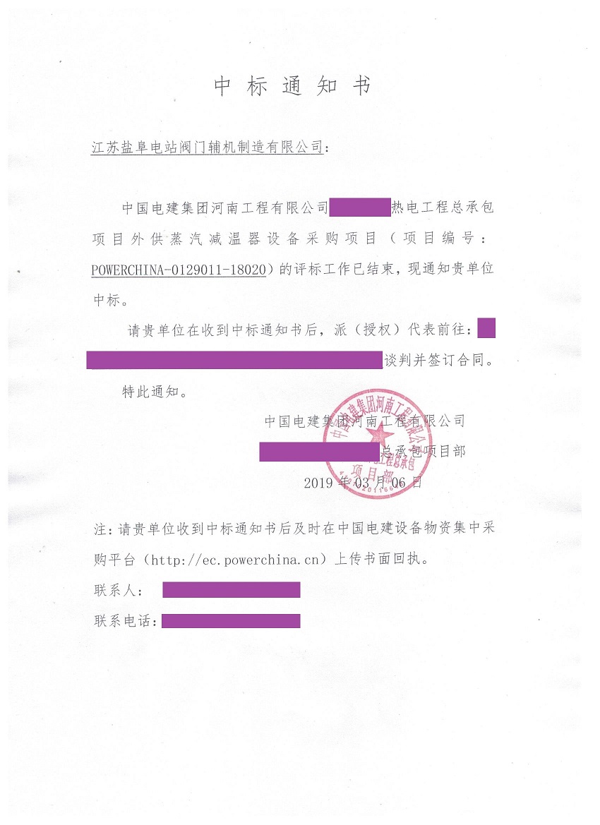 中國電建(世界500強(qiáng))濮陽濮潤減溫減壓器