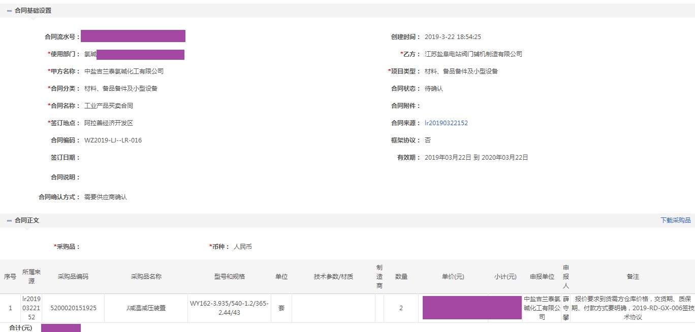 冀中能源(世界500強(qiáng))聚隆化工減溫減壓器