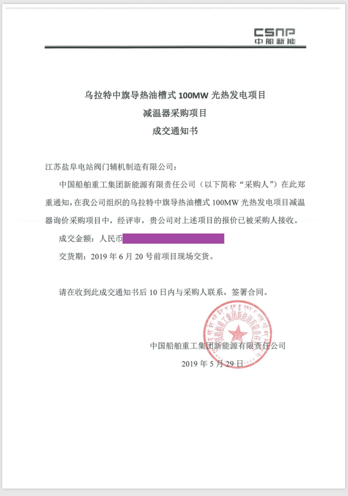 中船集團(tuán)(世界500強(qiáng))烏拉特光熱減溫器