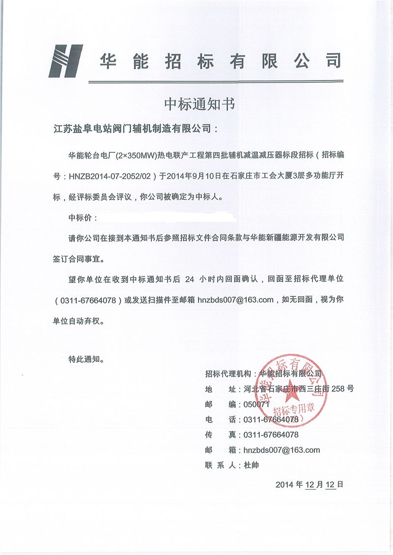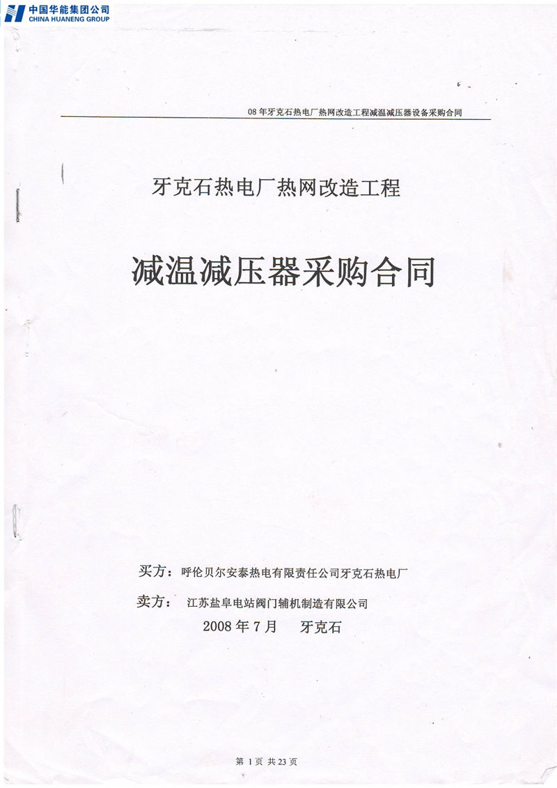 華能呼倫貝爾公司牙克石熱電廠減溫減壓裝置