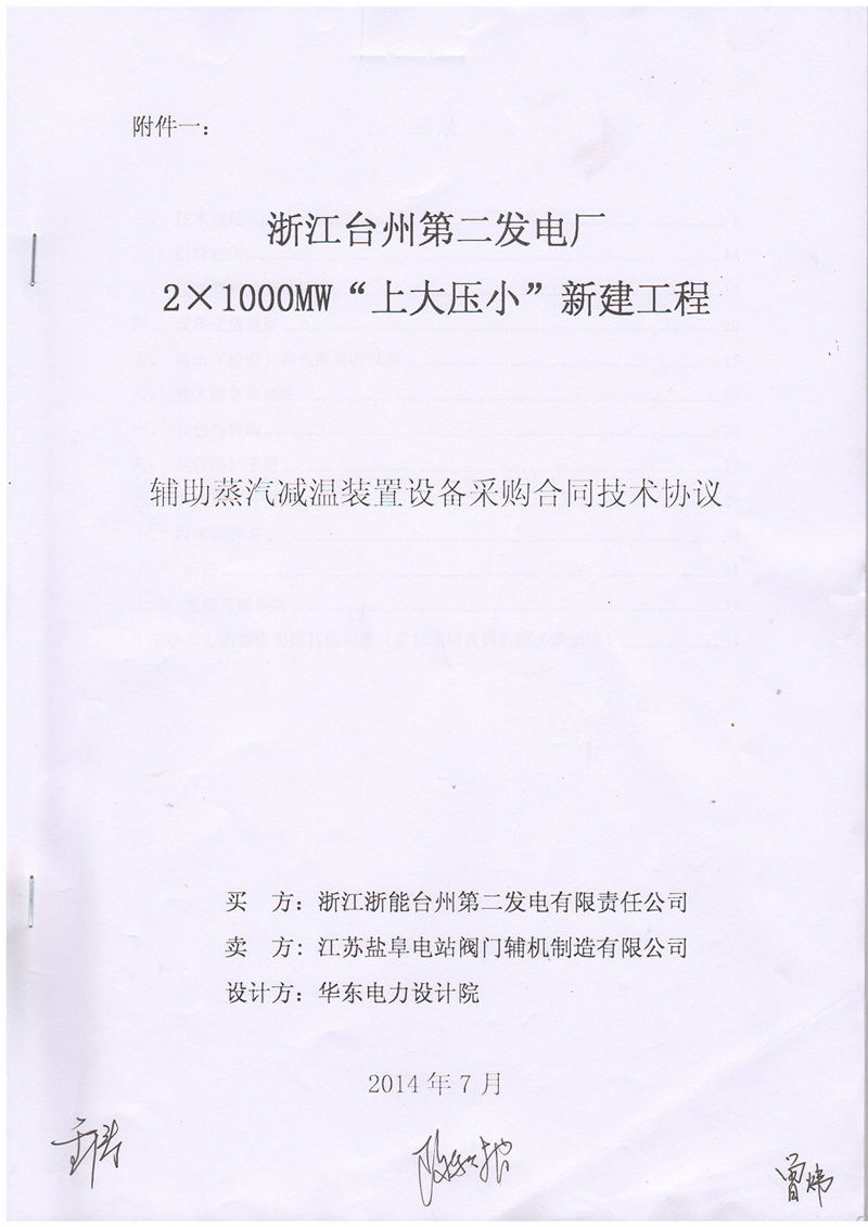 浙能臺州2x1000MW"上大壓小"減溫裝置