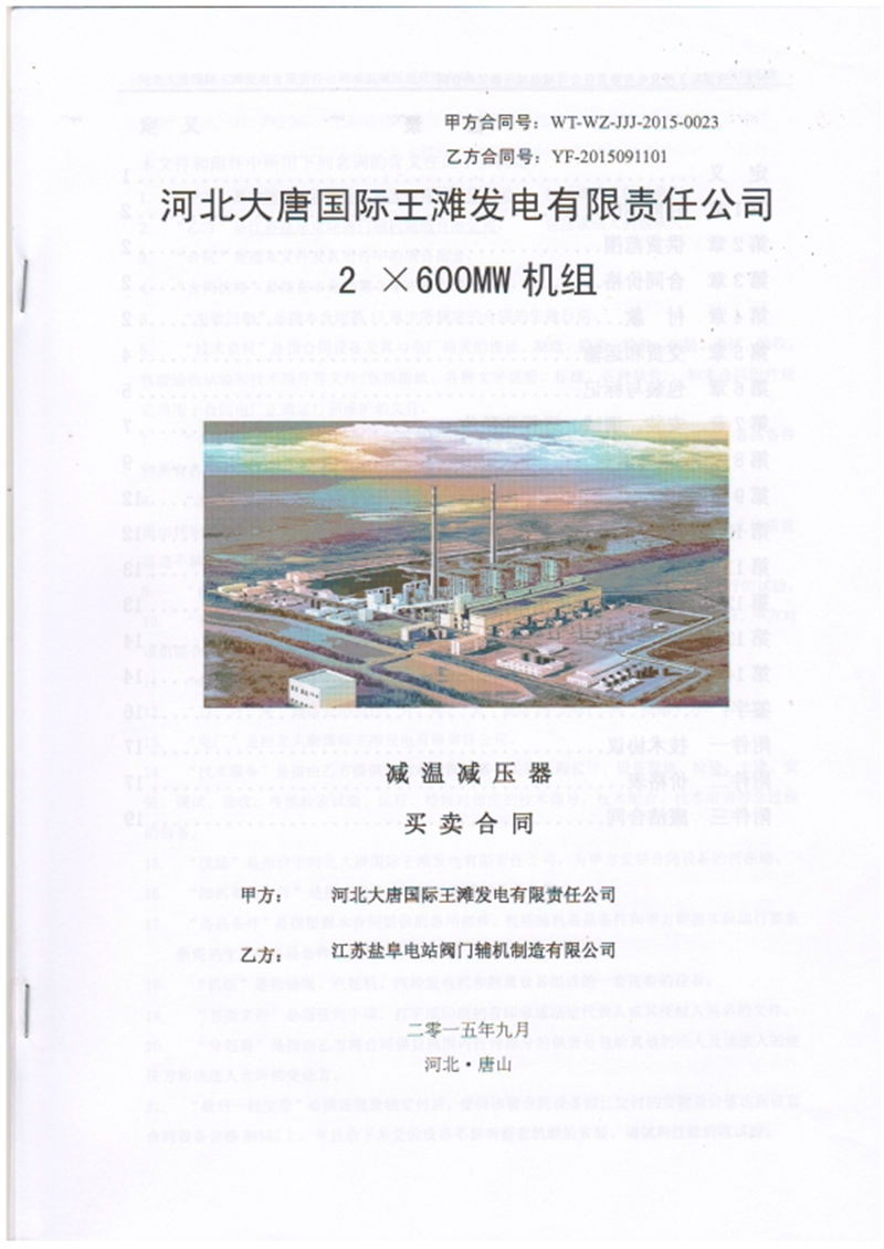大唐王灘2x600MW機(jī)組減溫減壓裝置