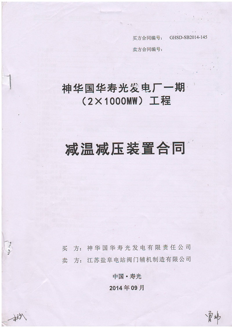 神華壽光2x1000MW機(jī)組減溫減壓裝置
