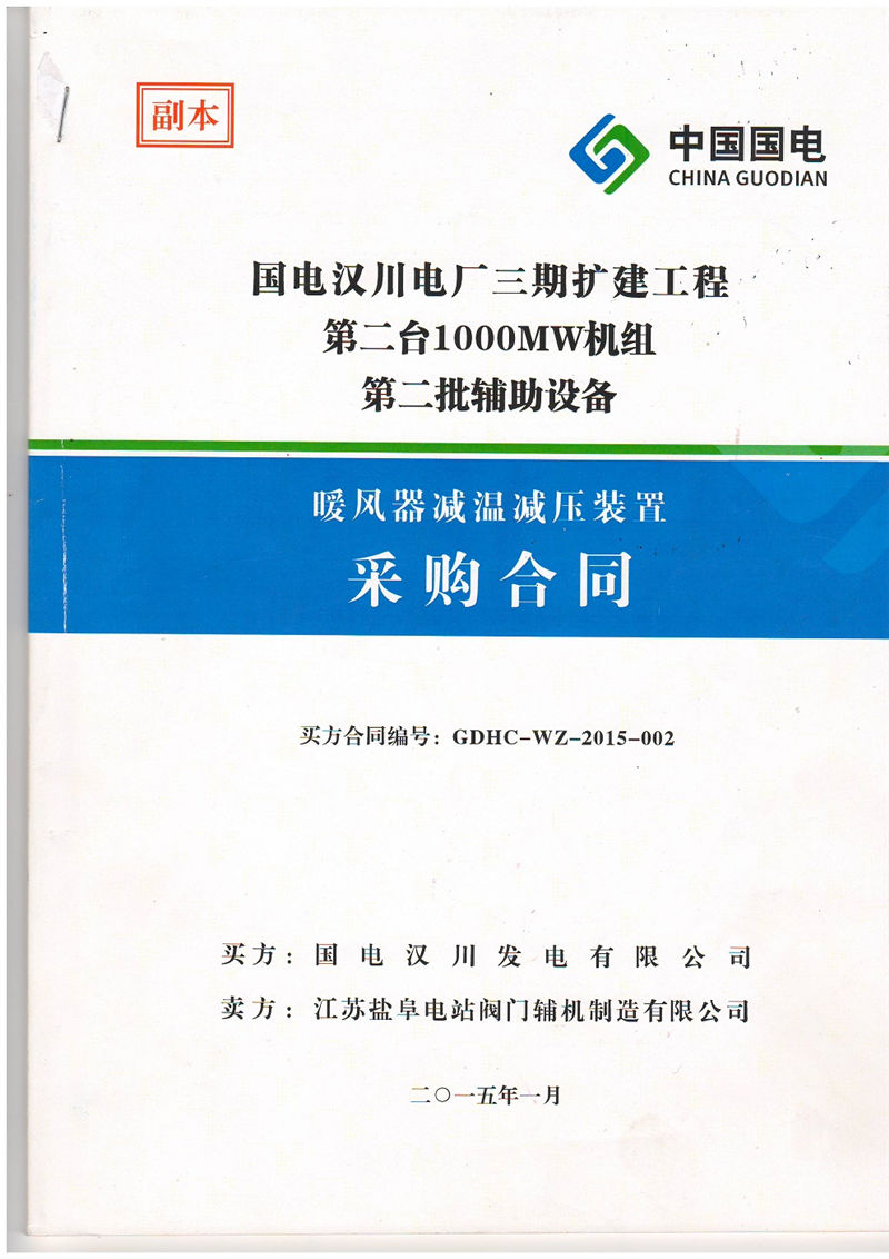 國電漢川三期1x1000MW機(jī)組減溫減壓器